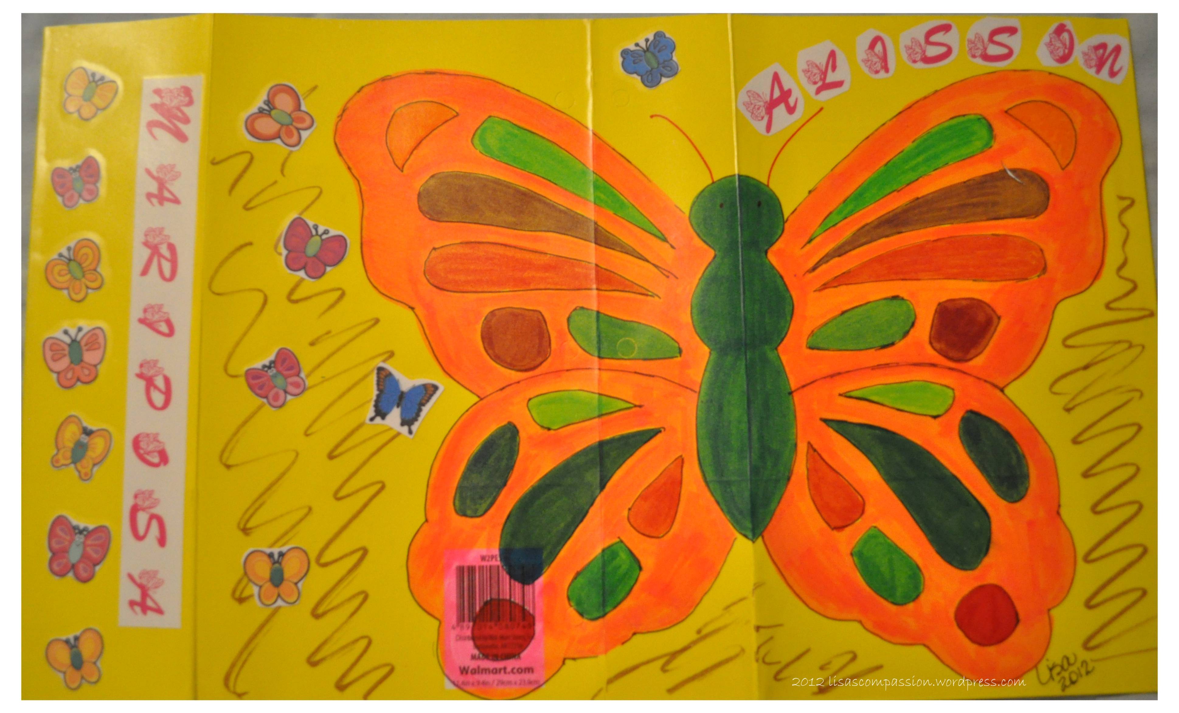 I figured a Butterfly is a perfect idea for a birthday present, and for these children who need to be reminded about how God is transforming their lives, both spiritual and earthly needs.