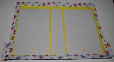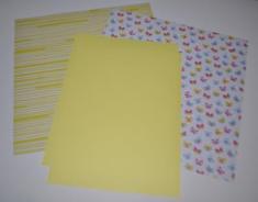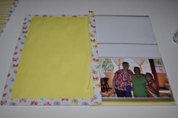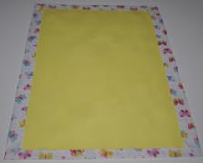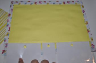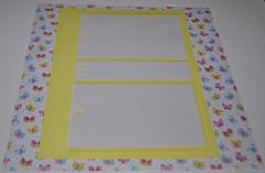 Set you front and back down, making sure that your holes match, along with the top and bottom of the photo album. The Yellow sheet is the back, and the butterflies are the front.