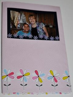 Step 12: Place pictures on the front cover, or put comments, or decorate. One scrapbook sheet I used had a design on it, so I made sure it was centered, and did not add anything else to the front.
