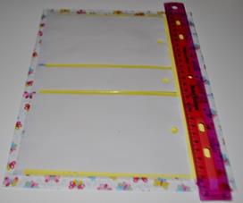 Step 3: Using the Photo Sheet as a guide, place a ruler about ¼” away from the Sheet. This will be the first of two folds, make sure that your cover will be right side up before making the fold. Nothing like having an upside down design, or maybe that is your plan.