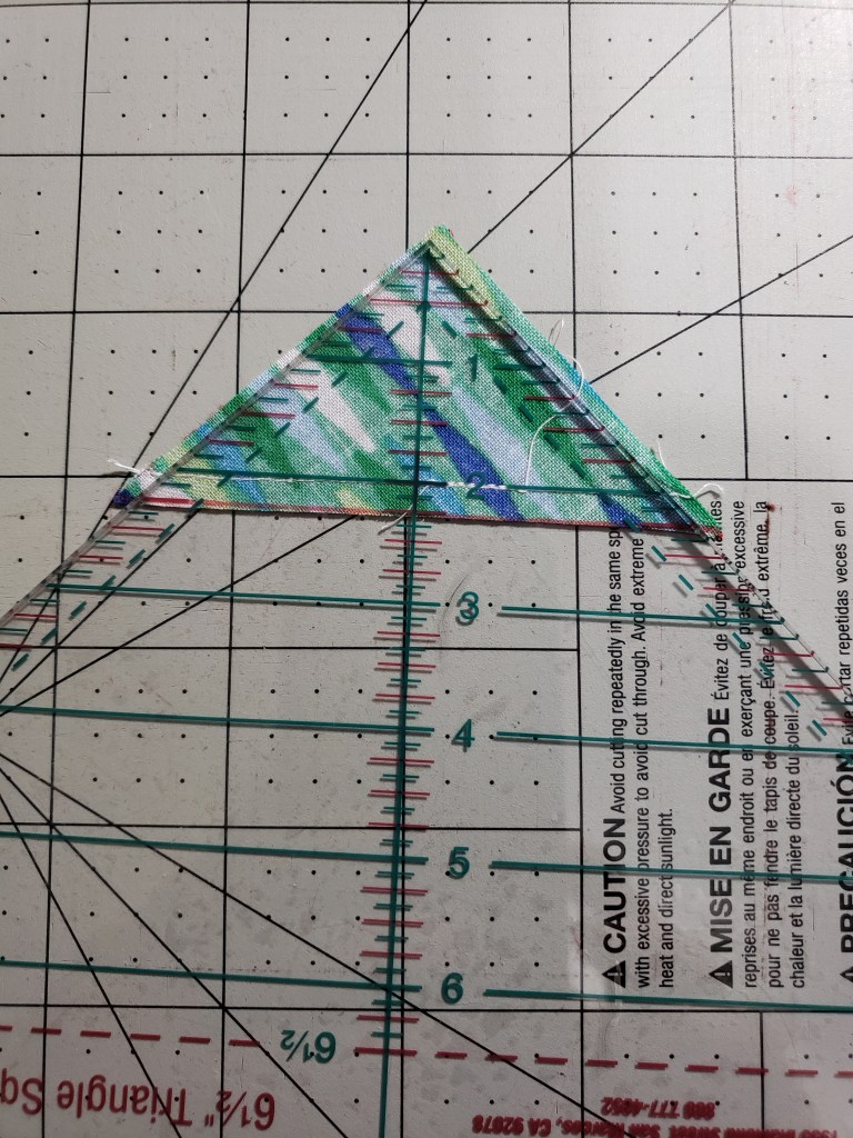 If you squared using the triangle method, you will have the “dog tails” on the corners that you can snip off.