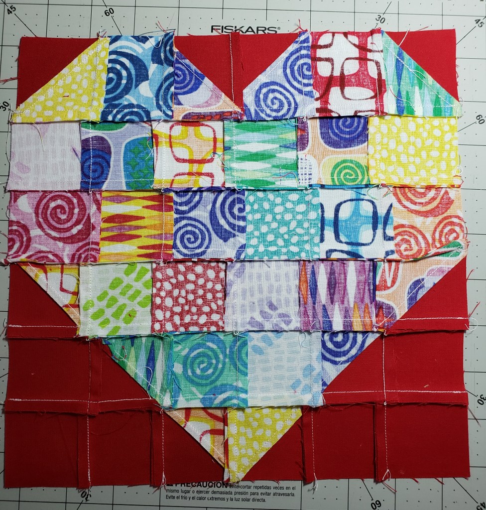 You now have the February Postage Stamp Heart block done! Post a picture on our Facebook group!