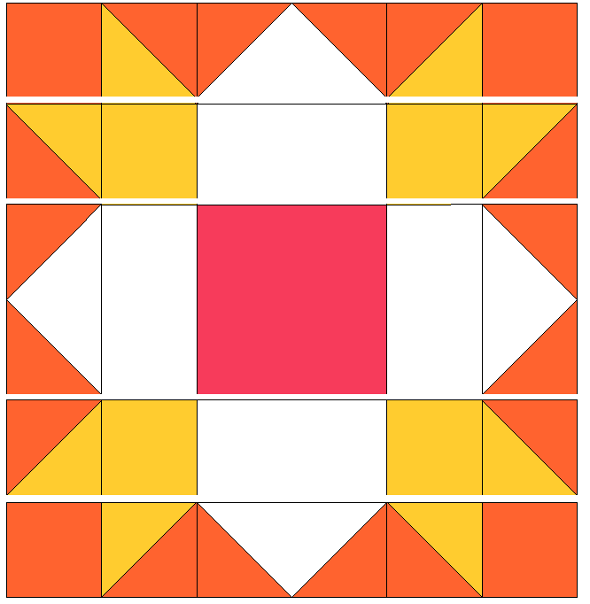 Using the 5 1/4″ x 5 1/4″ White and 2 7/8″ x 2 7/8″ orange (4 pieces)