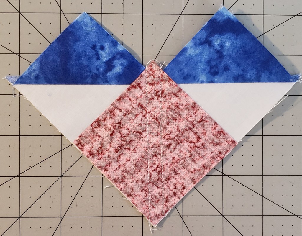 Sew the left side triangle to the center.