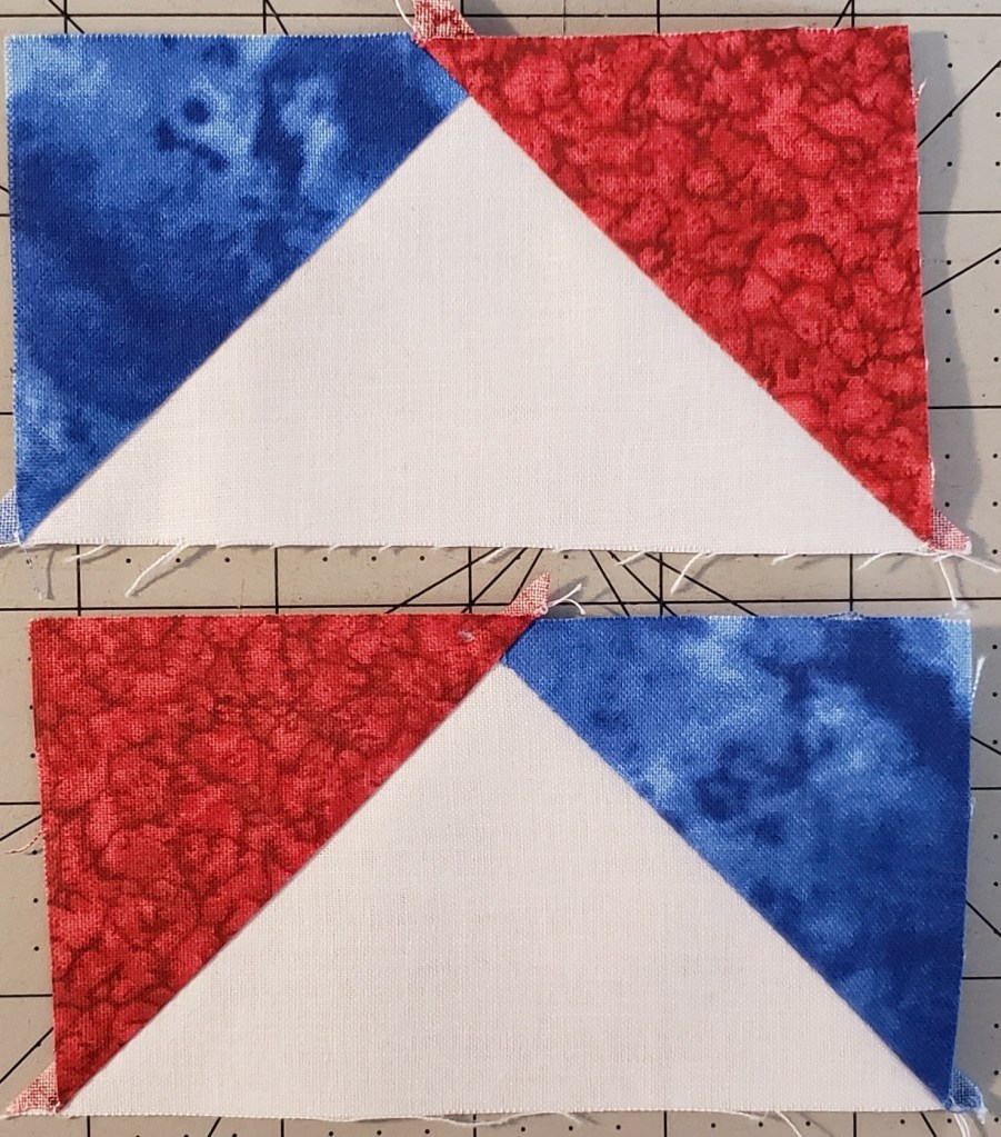 These block pieces will depend on the size of your finished Flying Geese. This process can be used to create different color flying geese.