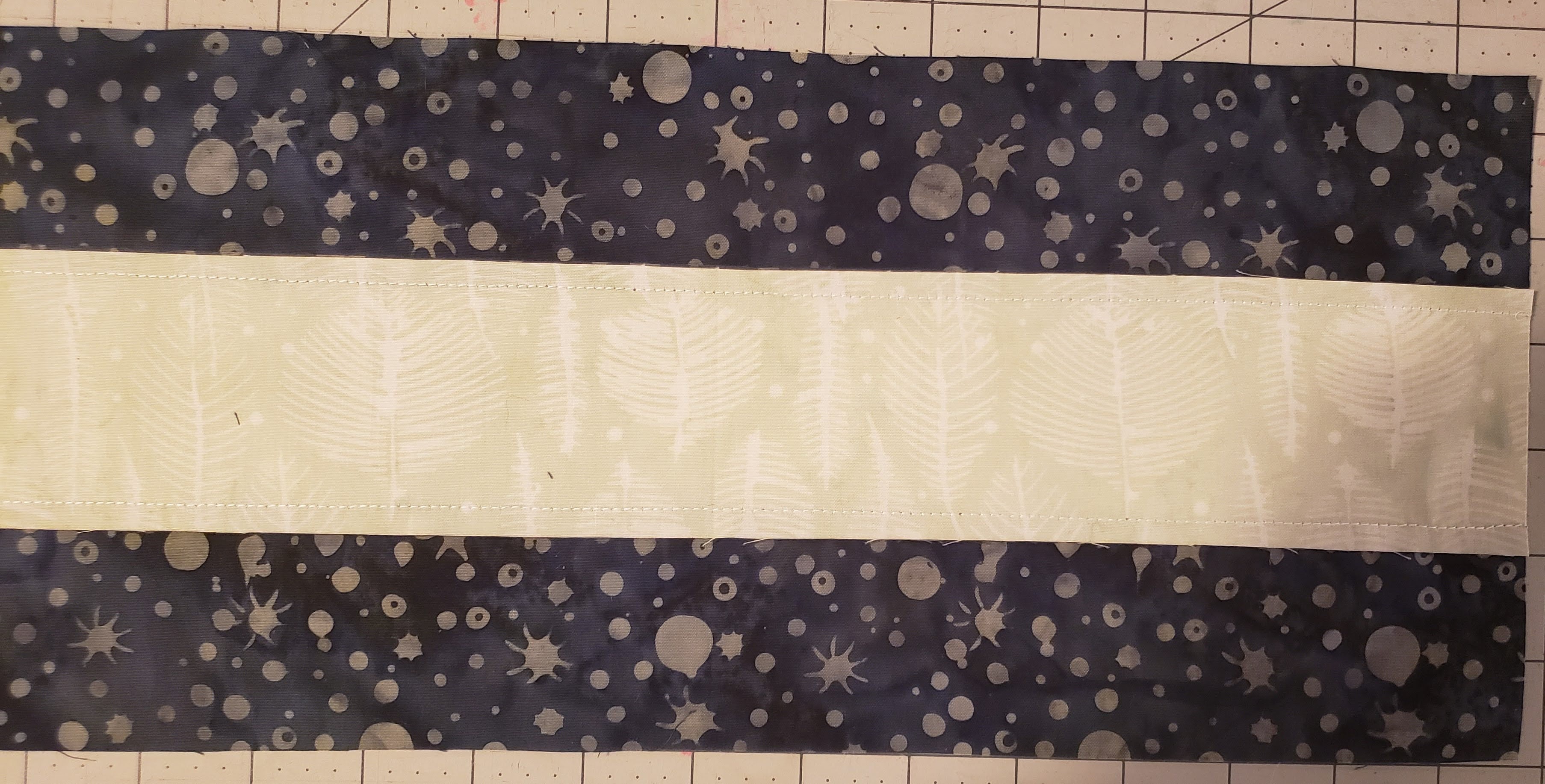 Repeat the process using the 5″ pieces of Piece G and one 5″ piece N, sew together and press the seams towards the dark fabric