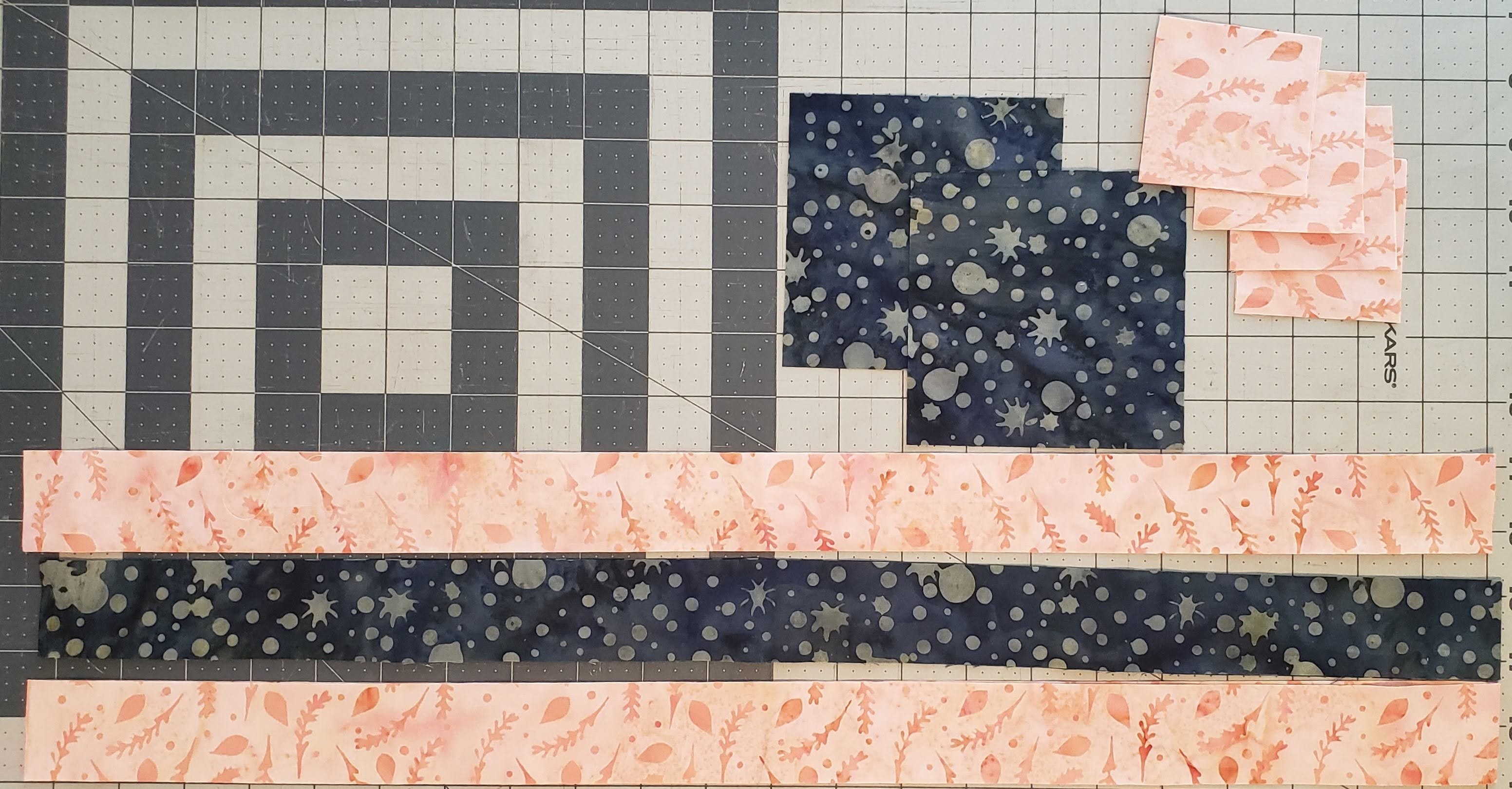 You can also use fabric in your stash to create the blocks. If you are using fat quarters, your cutting lengths may be different, so you will need to cut more strips of fabric.
