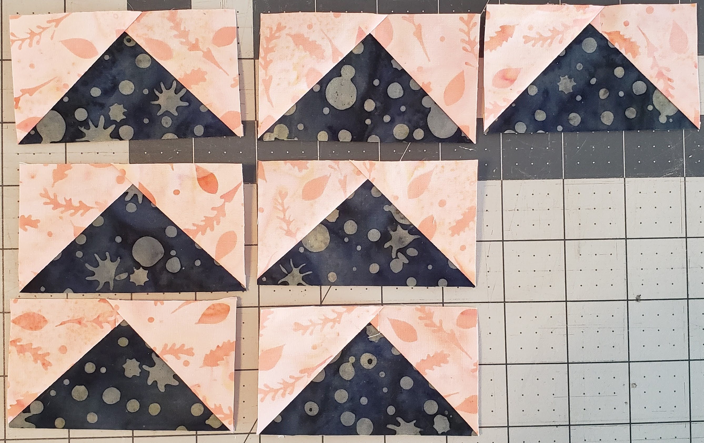 We will start with creating 8 Half Square Triangles (HST)