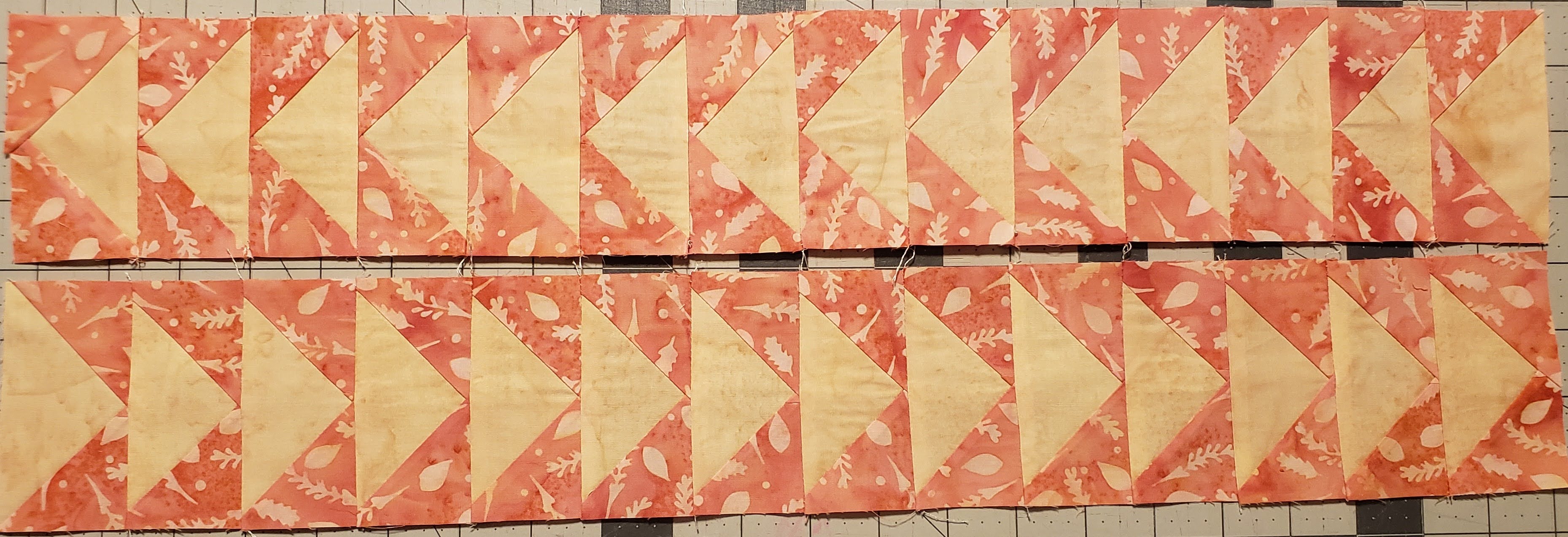 Here are my 3 Flying Geese rows, all ready to add to the quilt top.