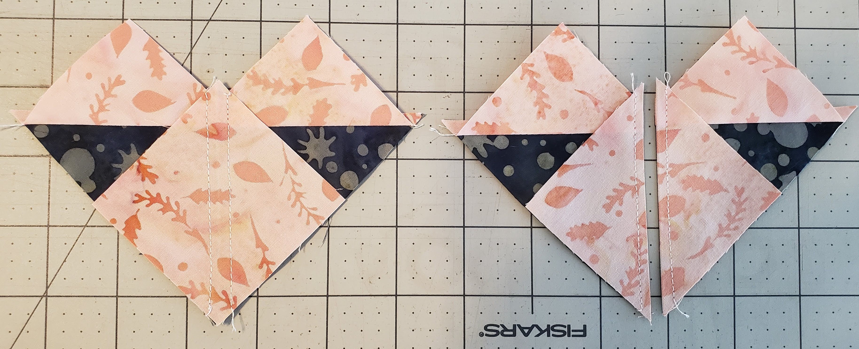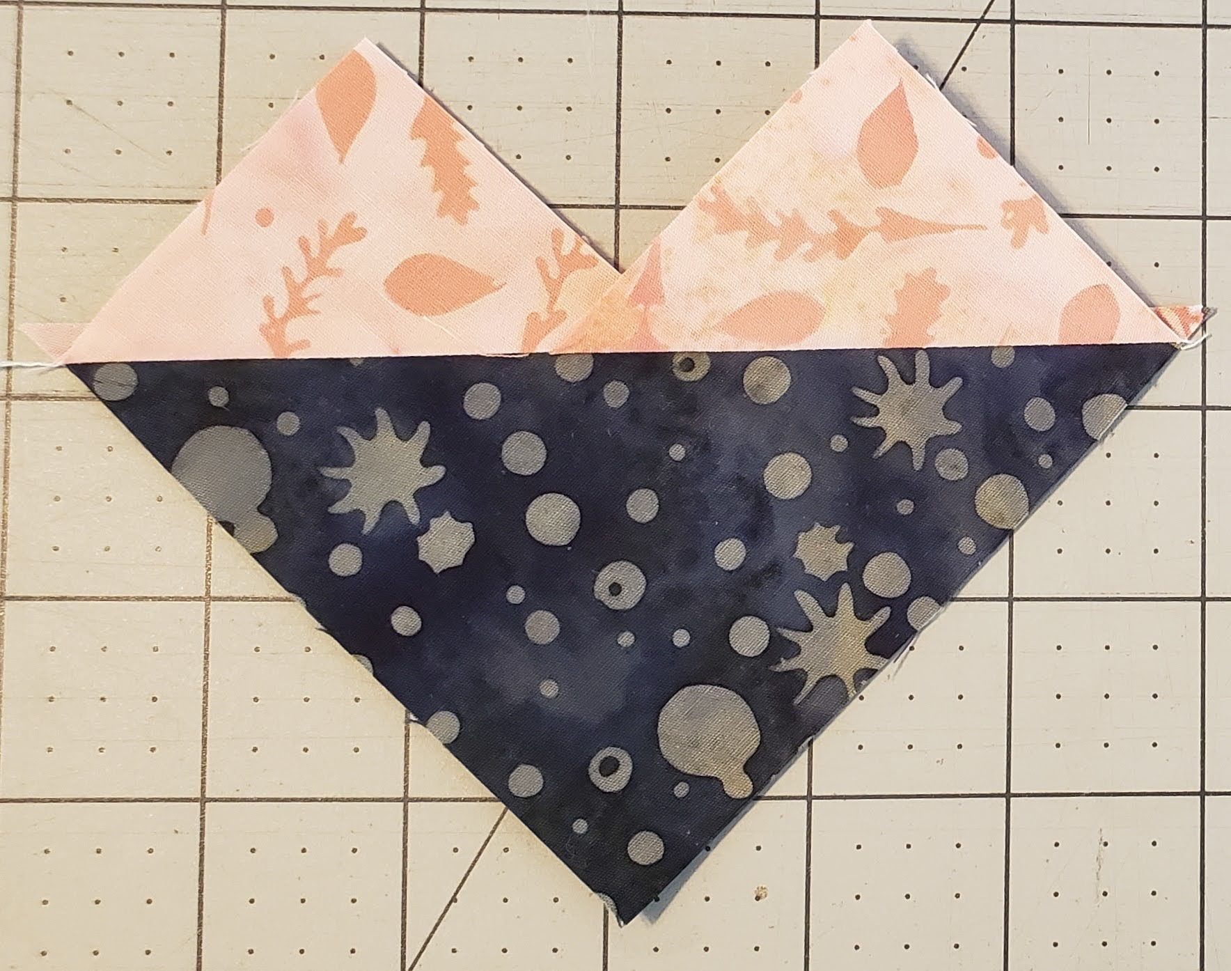 Press the seams, towards the center color (middle triangle) to reduce bulk.