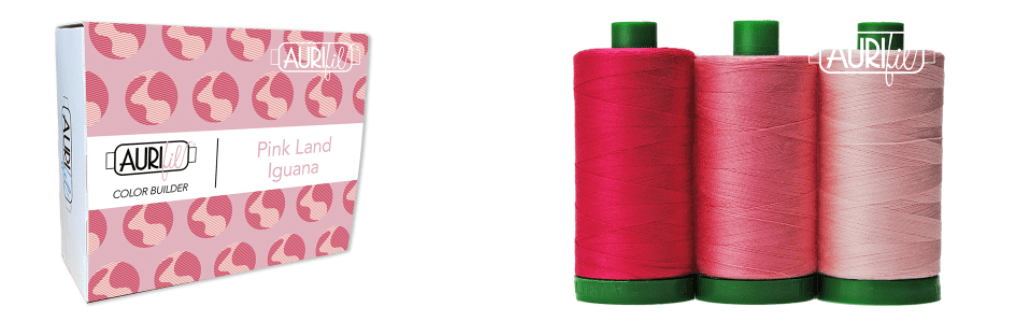 I used some Hobbs wool batting that was given me, and Aurifil Color Builder, Pink Land Iguana I received from Auriful, to piece and to quilt. I used the darkest (#2530) for the back quilting and the lightest (#2410) to piece and to quilt the top.