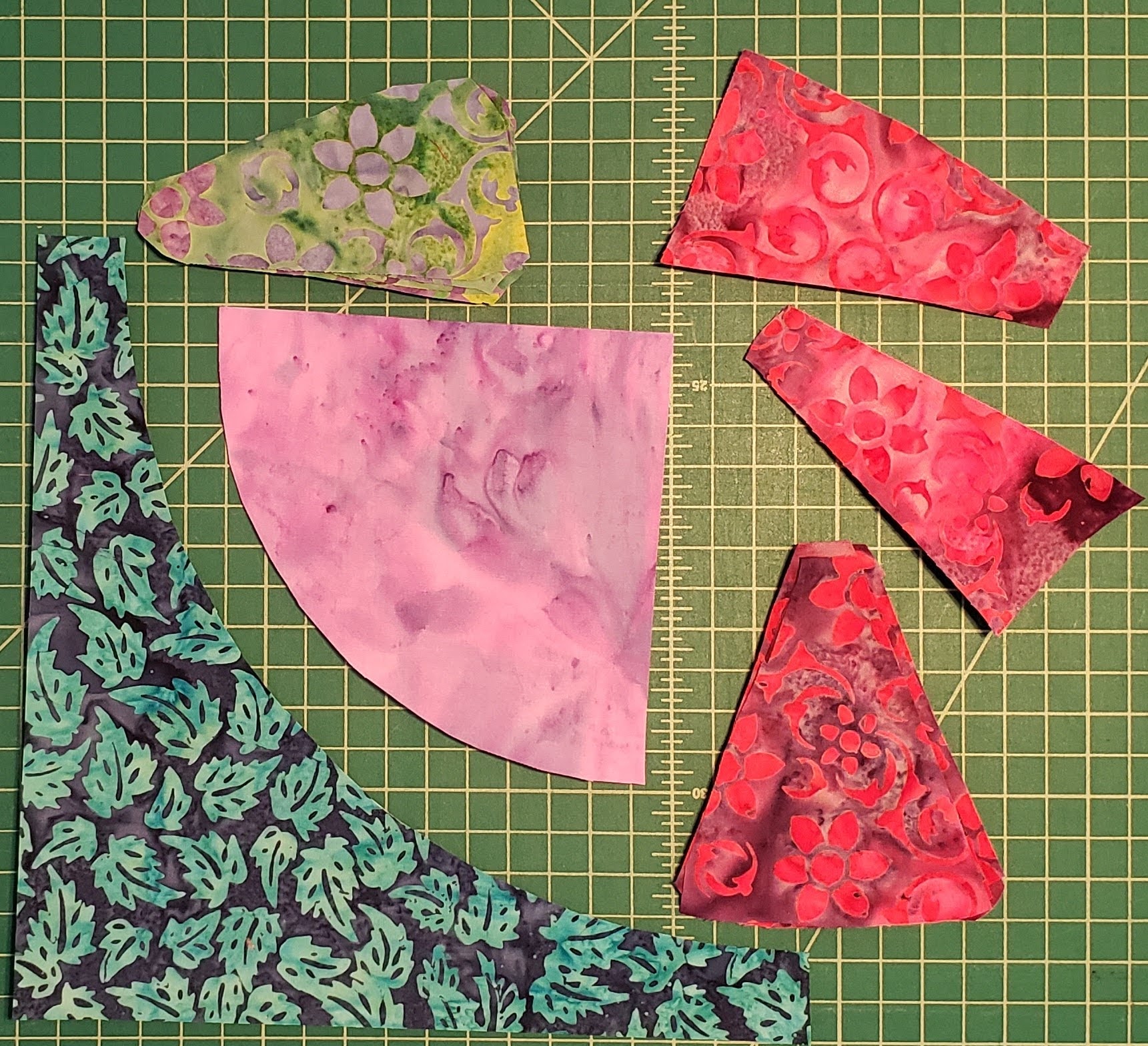 The triangle pieces for the middle do not need to be cut exactly if you are doing the paper piecing, as you will trim as you go if needed. I cut mine a little large. If you are going to just piece together, you will need to trim to size.
