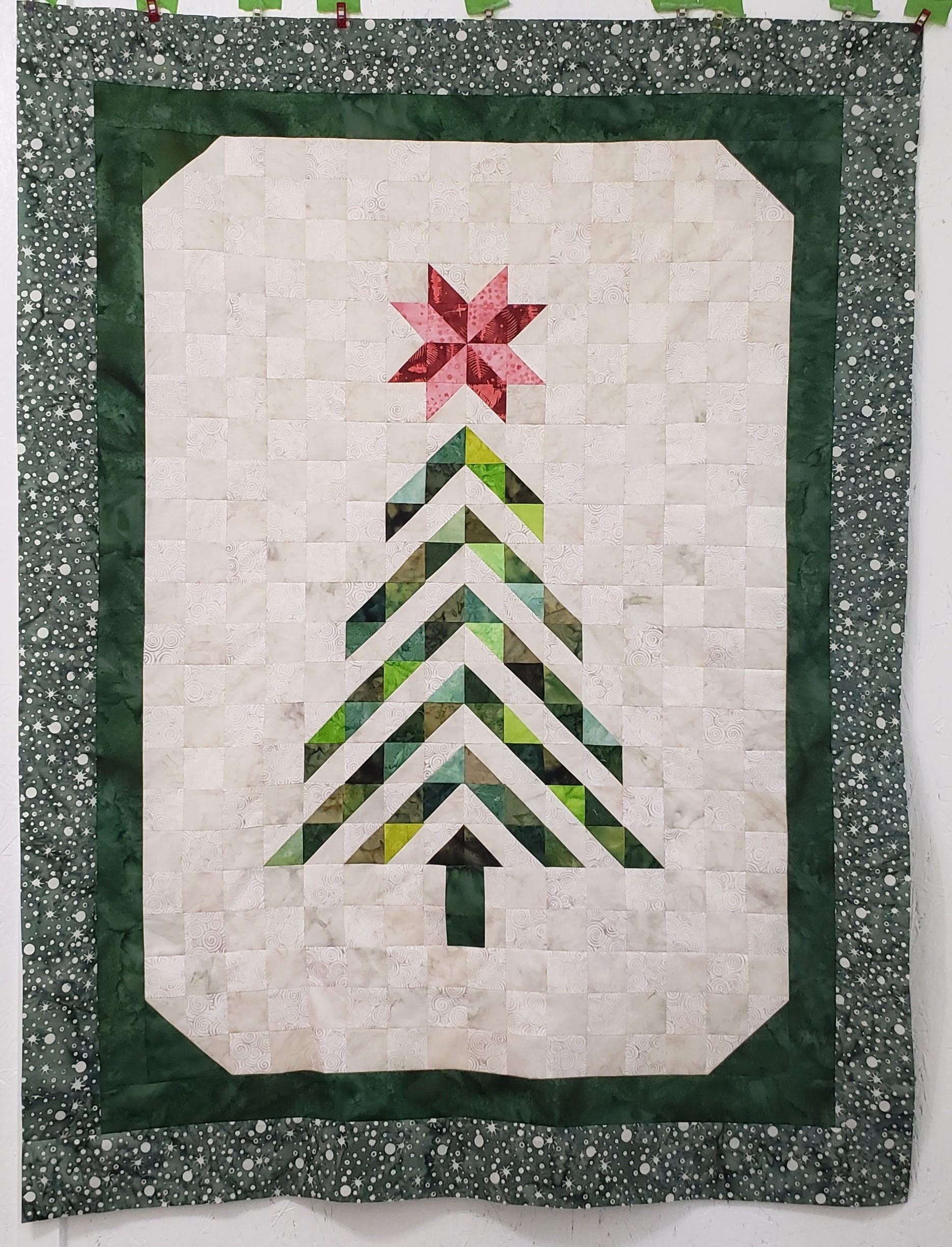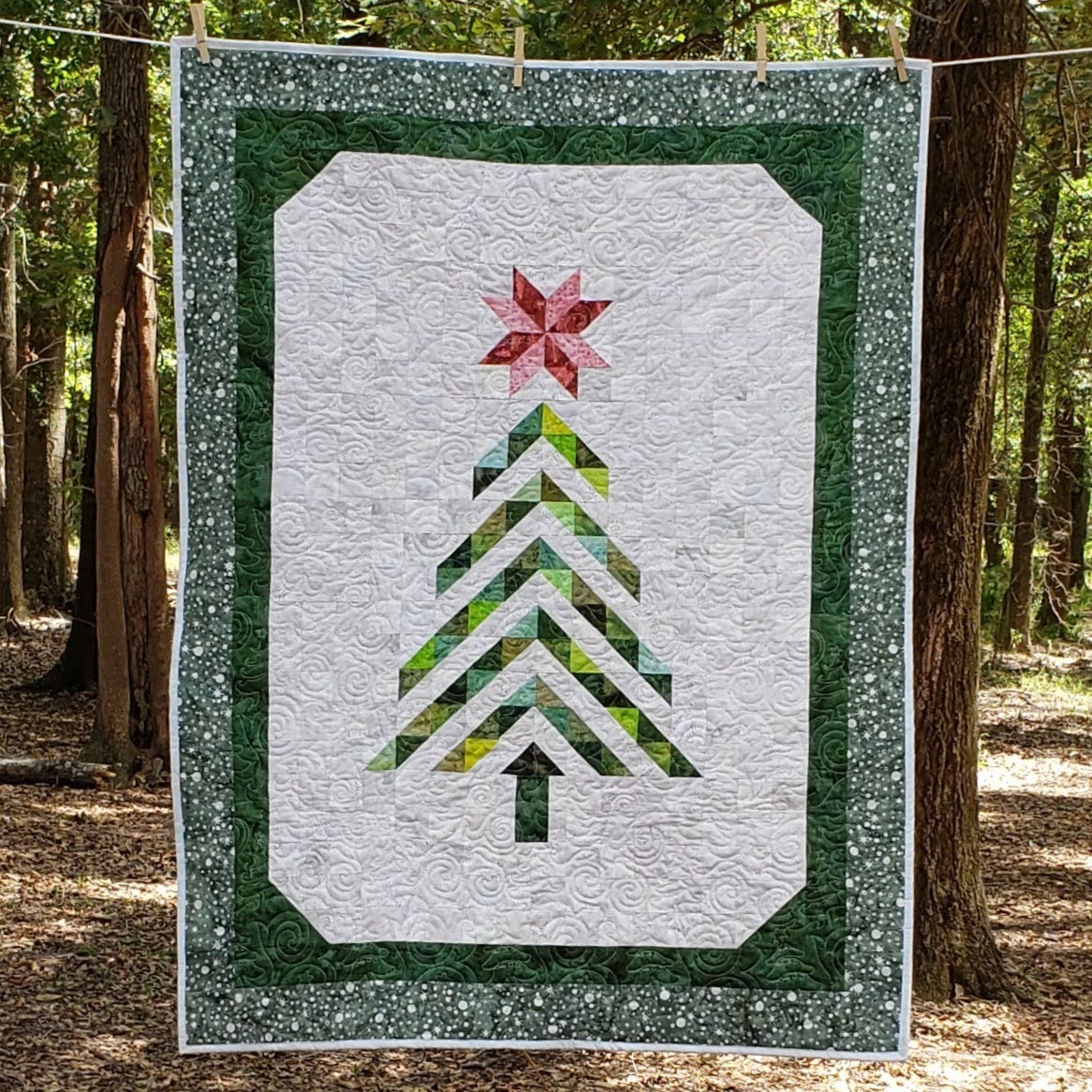 I like the traditional Tree of Life, however, I decided to use the die to create a Christmas tree utilizing several of the die pieces. My quilt finished at 31″ x 59″.