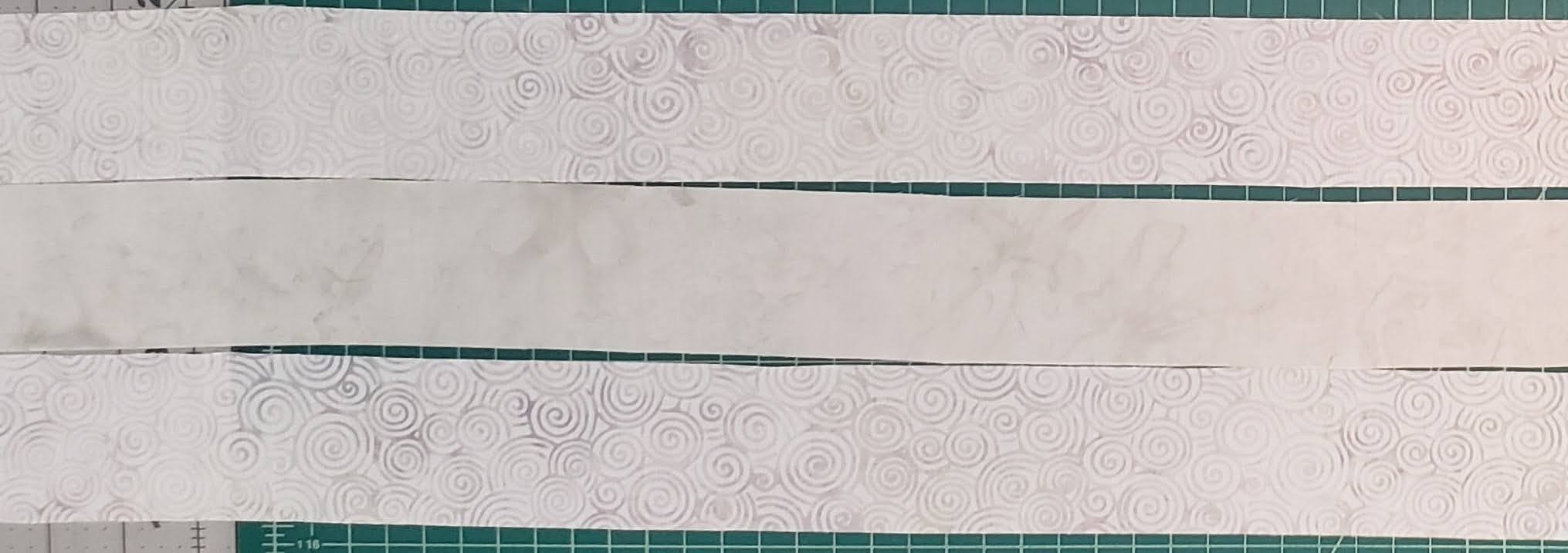Use the nine 2 1/4″ x WOF of both Oster and Icing (Background) fabrics.