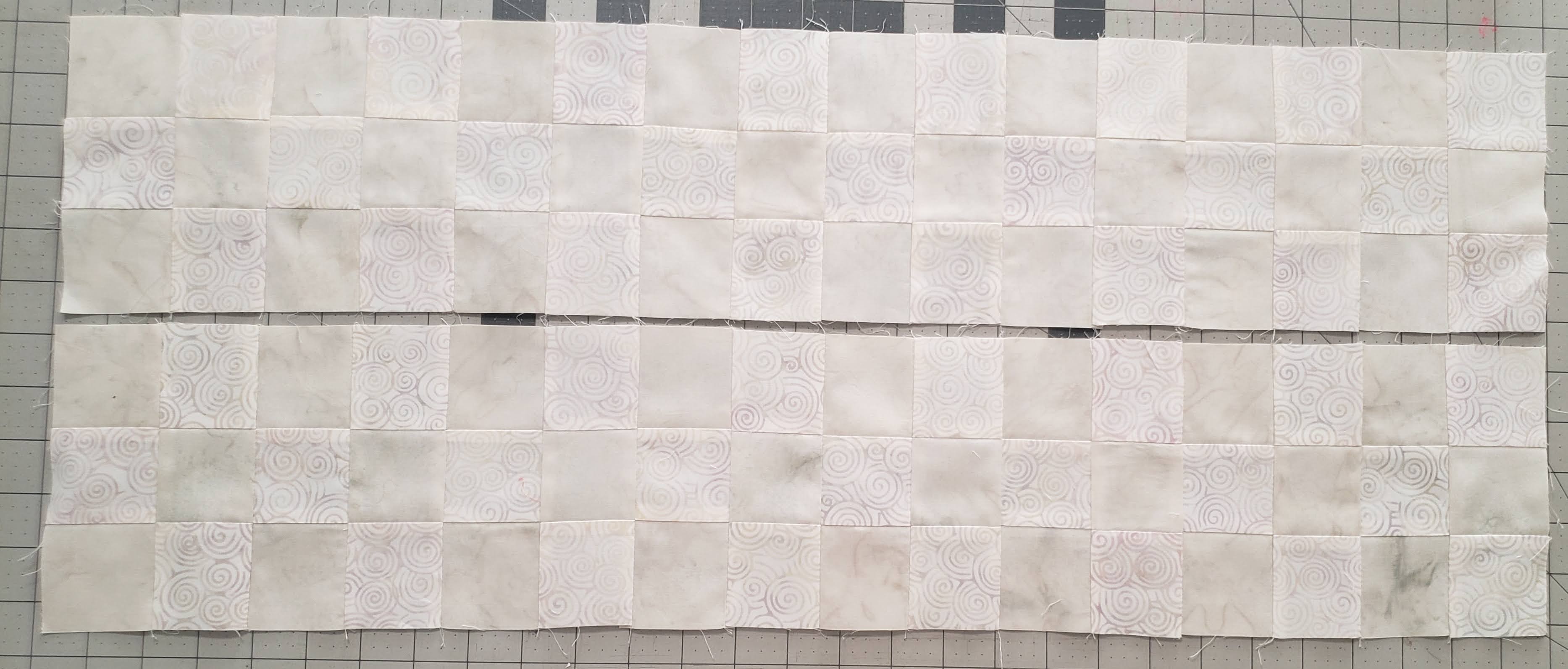 Lay two strips of 3 rows, by 16 squares (created in step 1) making sure they are laying the same.