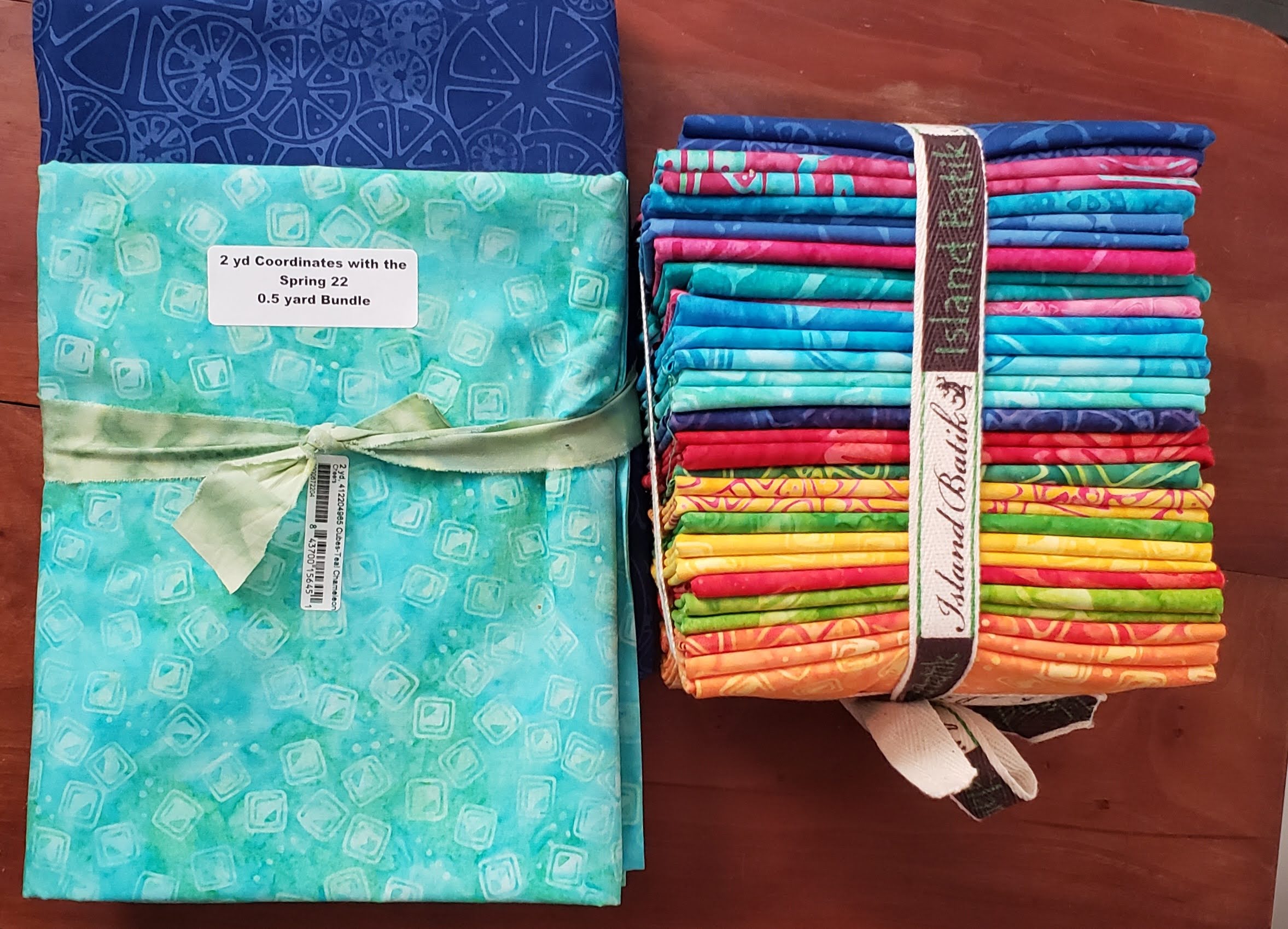 0.5 yard cut bundle of a surprise Summer 2022 collection + 4 yards of coordinating dark and light fabric