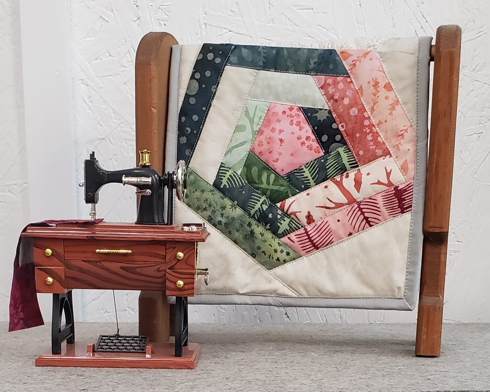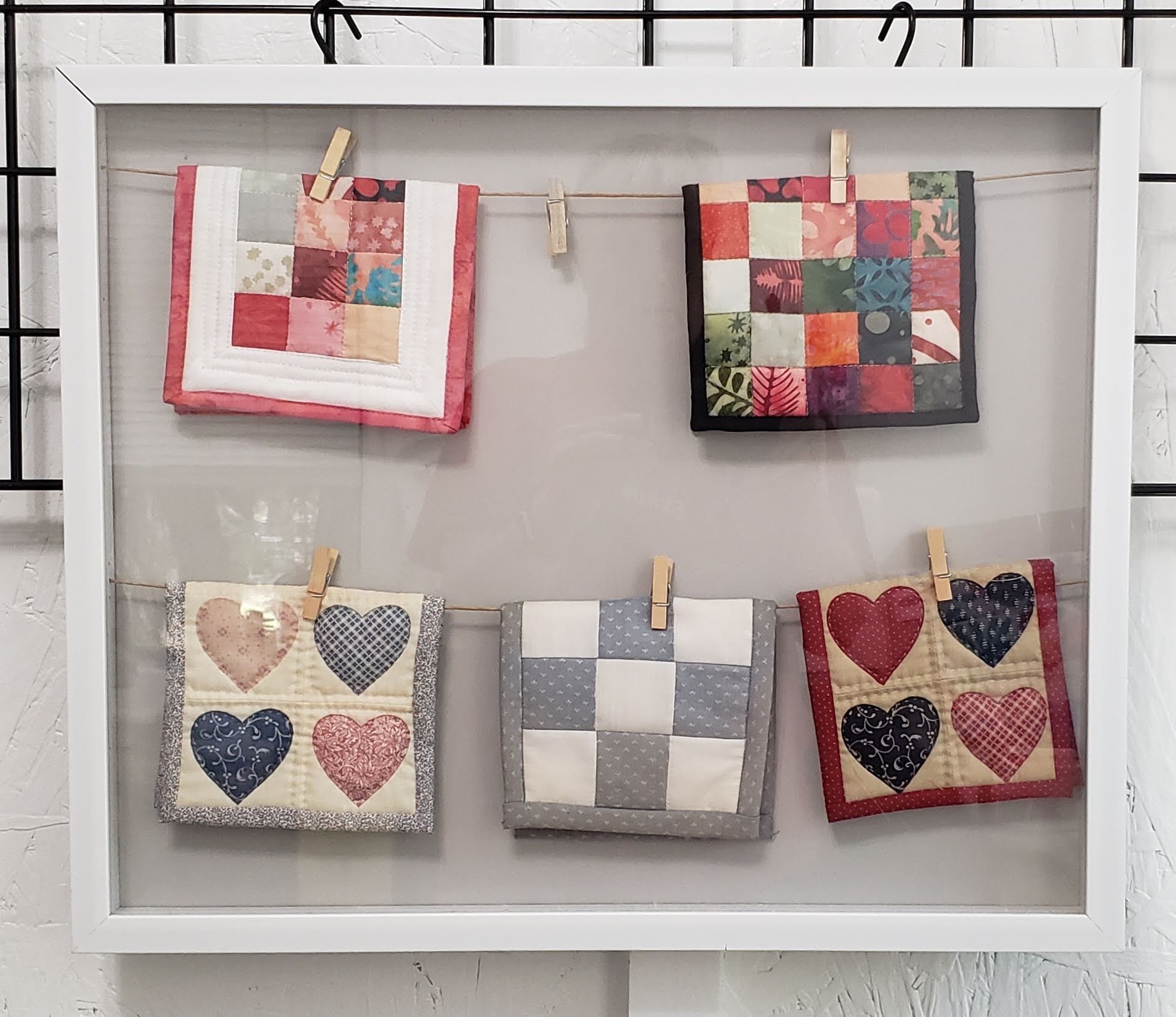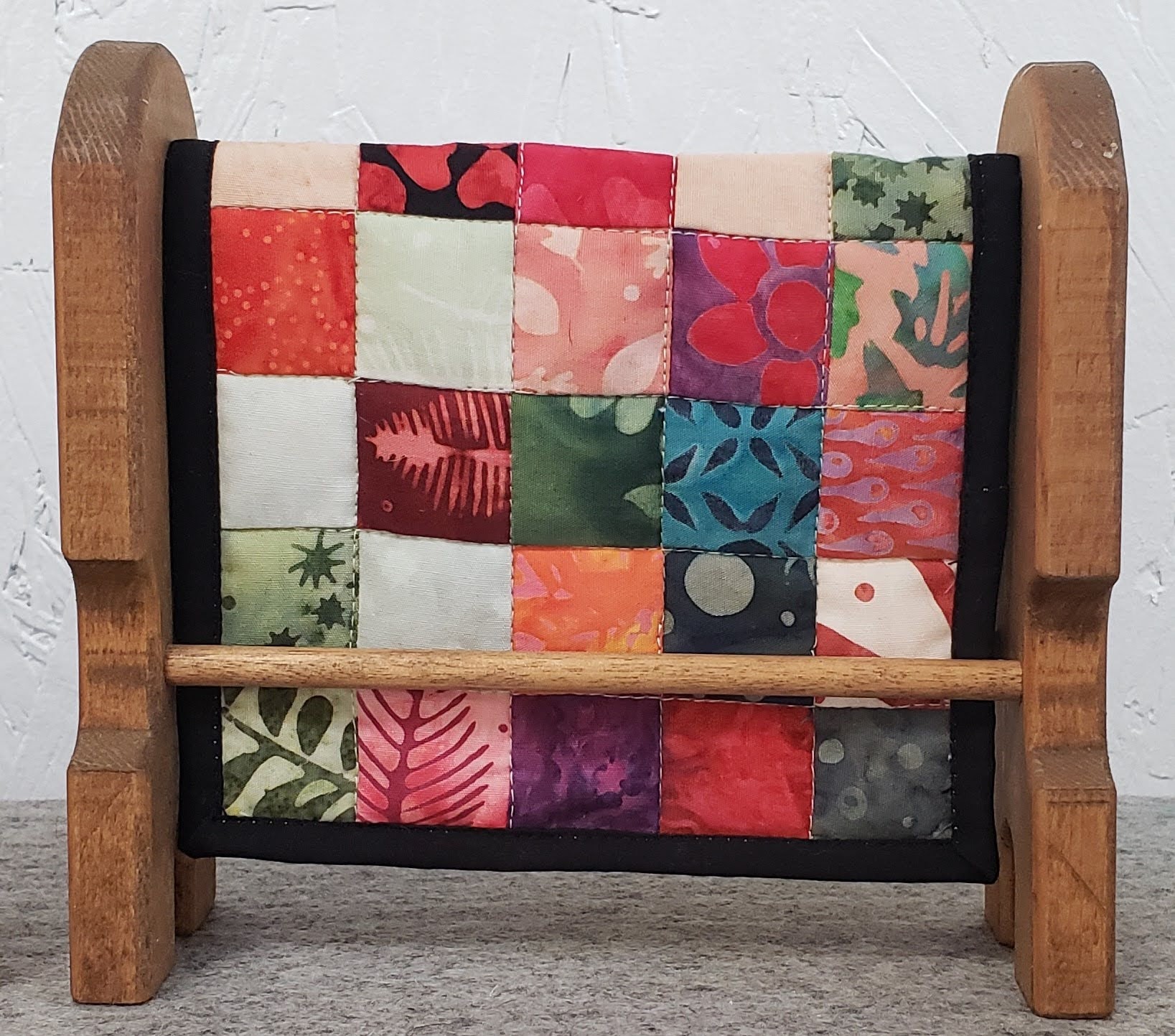 So for one part of this months challenge, I decided to create some of my own miniature quilts to put on this racks.