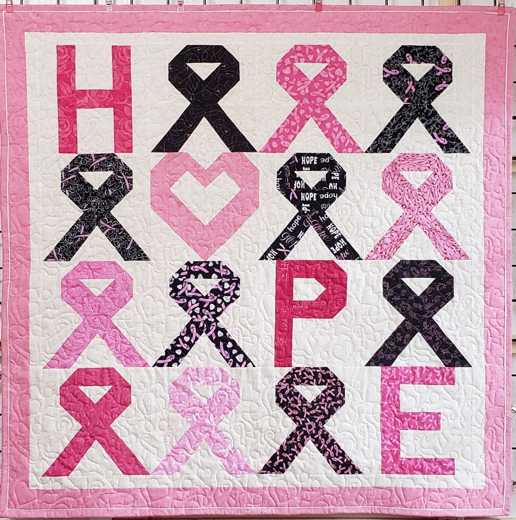This quilt is being taken to my mother, Penny. I hope it gives her Hope that everything will be worth the pain of Chemotherapy, and that she will beat Breast Cancer for a third time!