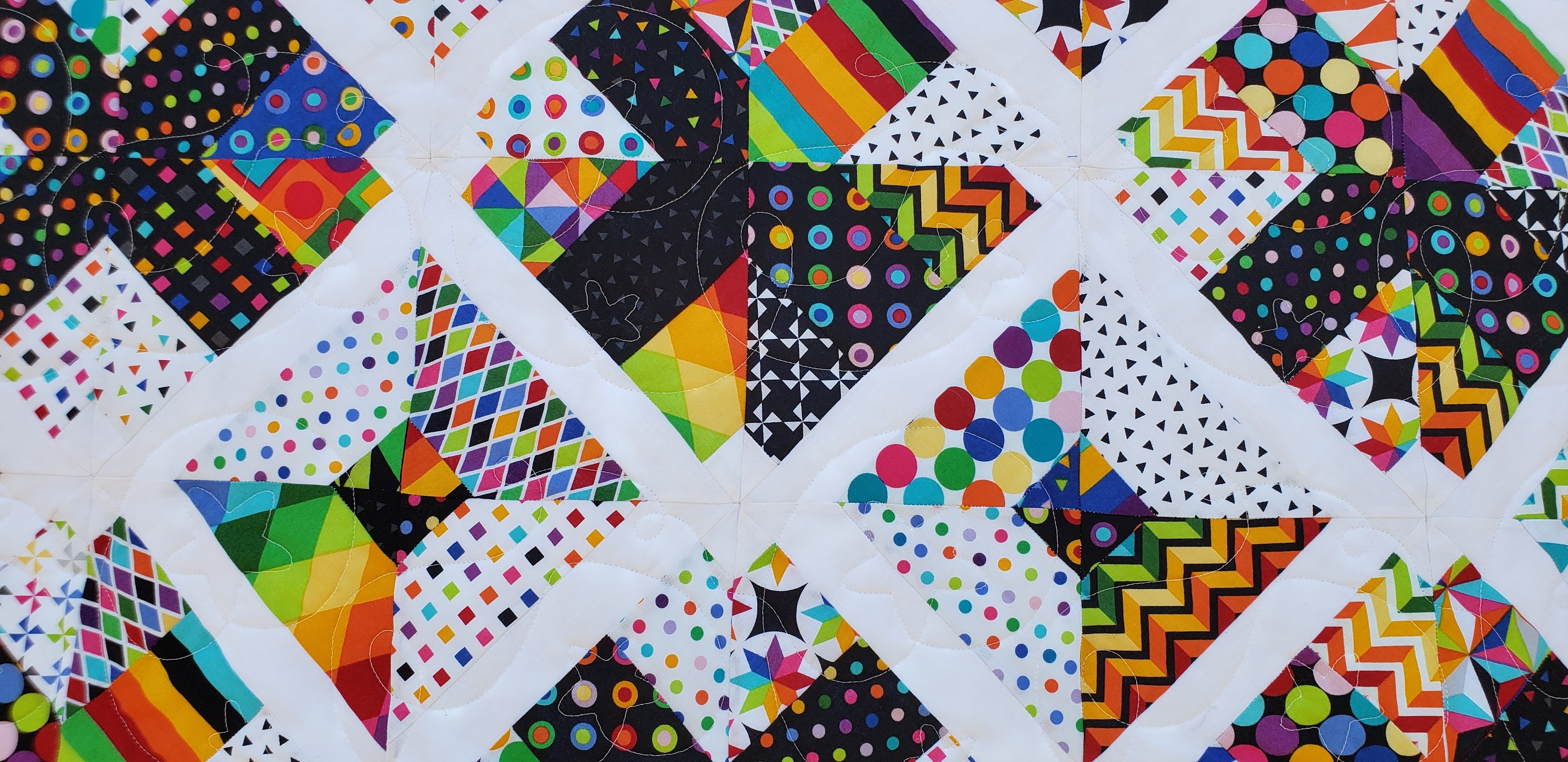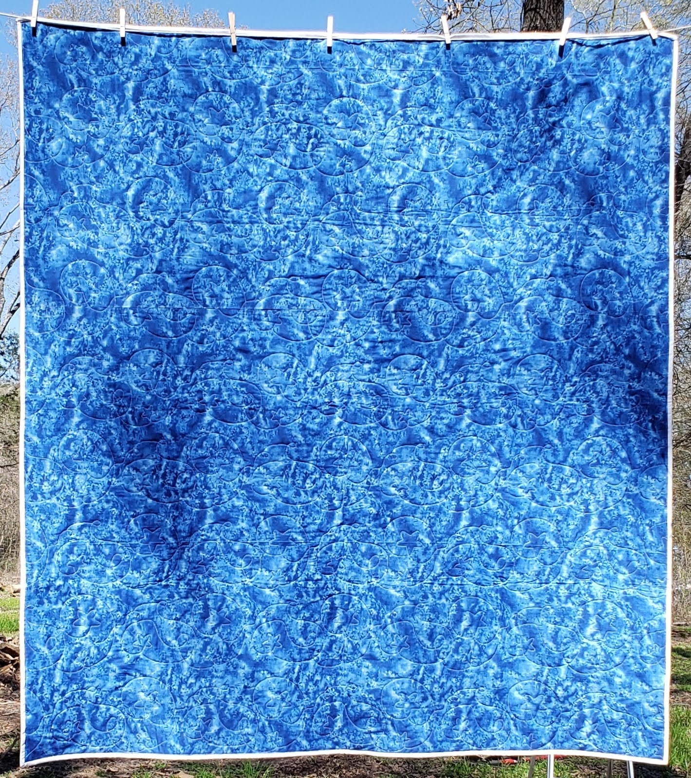 As I was quilting it, the more I looked at it, the more I realized as you learn to quilt and continue to make quilts, your quilting improves. I was amazed at how many errors I found in the quilt, and how wonky it was. I was able to quilt it, but there are a few tucks where the fabric wasn’t quite flat. However, when the quilt was finished and bound with a white binding, you don’t see all those errors, or how wonky it is, you just see a beautiful quilt.