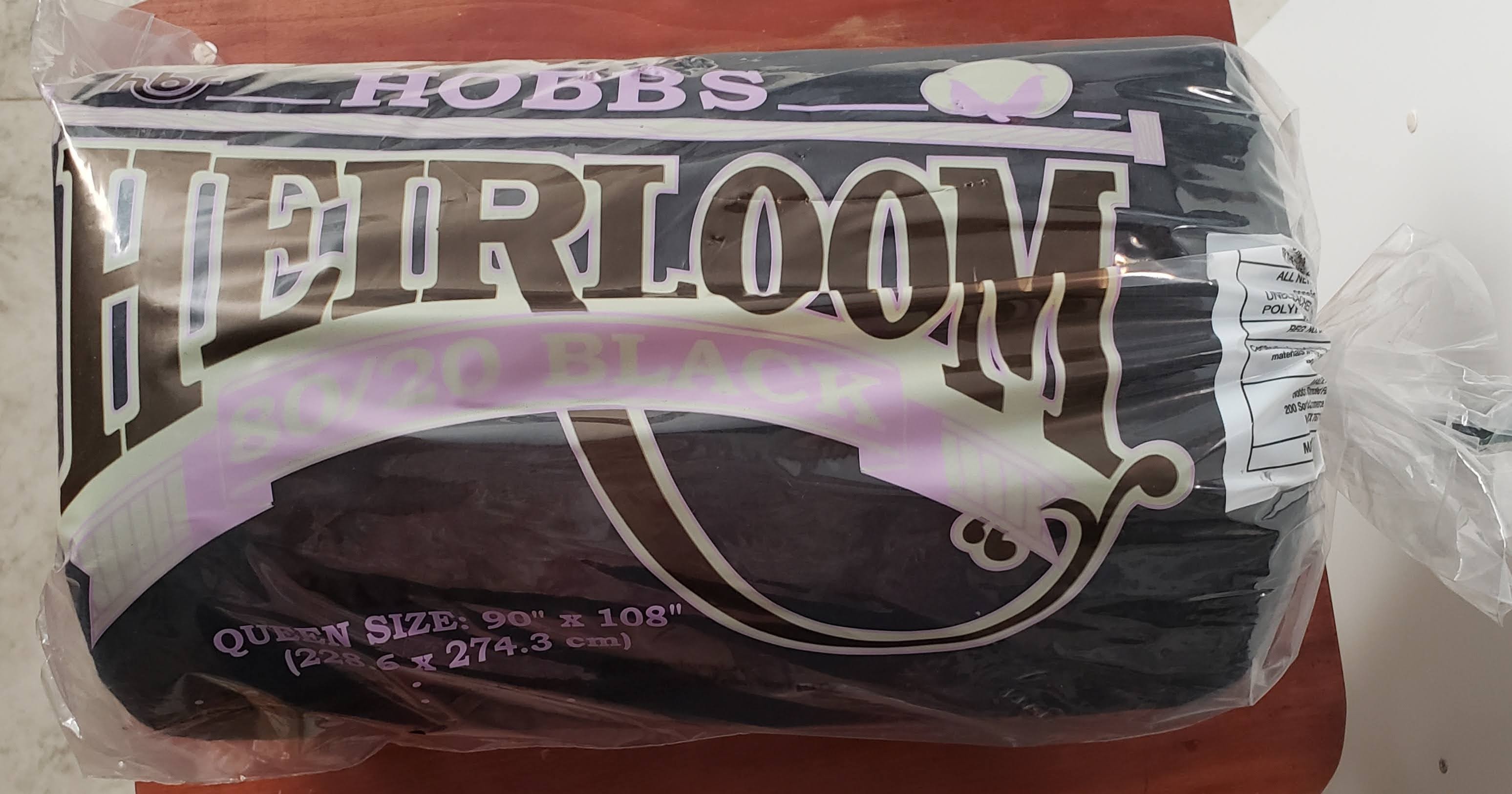 To quilt the quilt top, I used Black Hobbs Batting 80/20. This was the first time I had used black batting. Working with black fabric, black batting and black thread, was a test to my patience, they blend together so close, that it was hard to find the edges of the top or the thread if I had to remove stitches.