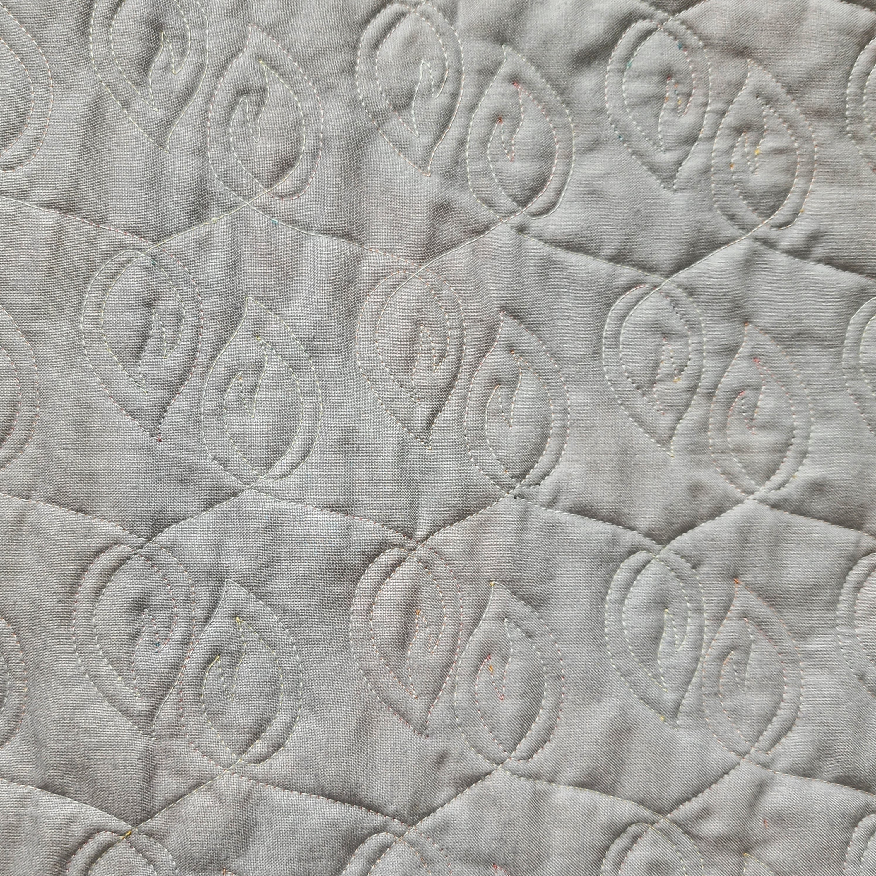 I quilted the top on my Juki Longarm, with Aurifil Black Thread #4657. This thread was part of Color Builder set, Bird of Paradise, that I purchased from Missouri Star. I used a design from Quilting Pantographs, called Flamed Leaves. This design was picked out by my husband, he liked how it would match the fabric. It fits him perfect. Quilting Pantographs has a great rewards program, and I got this design free with my points.