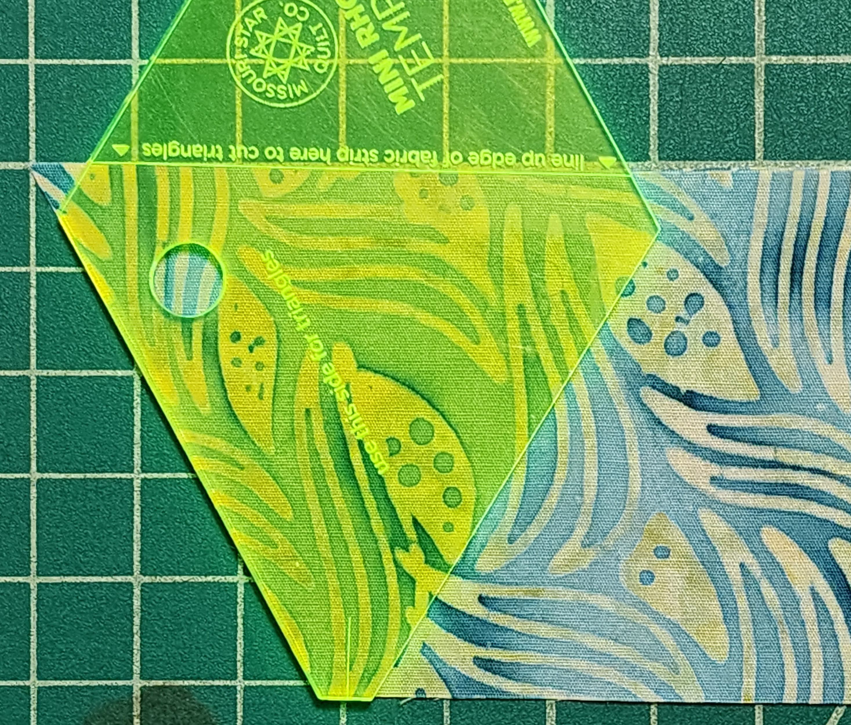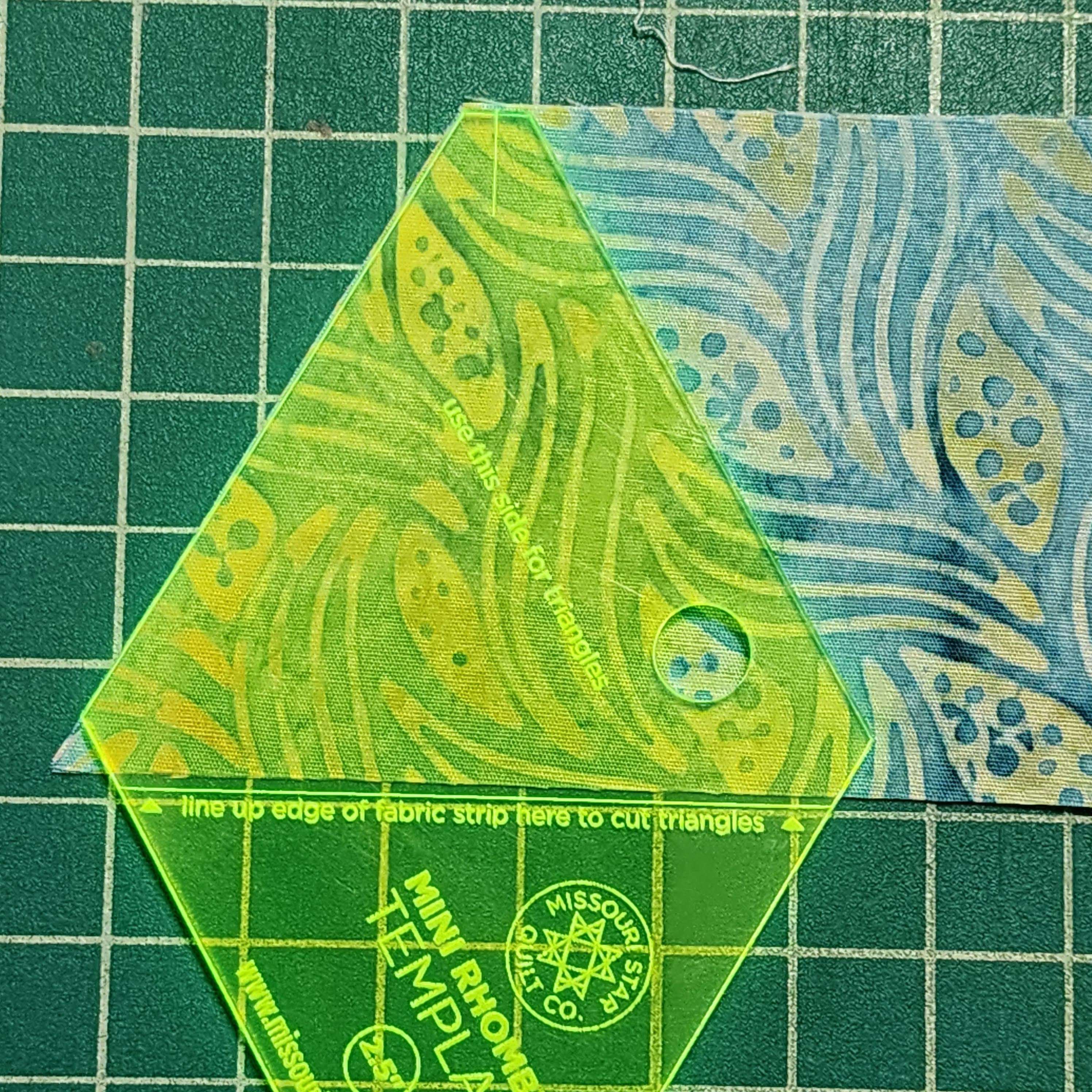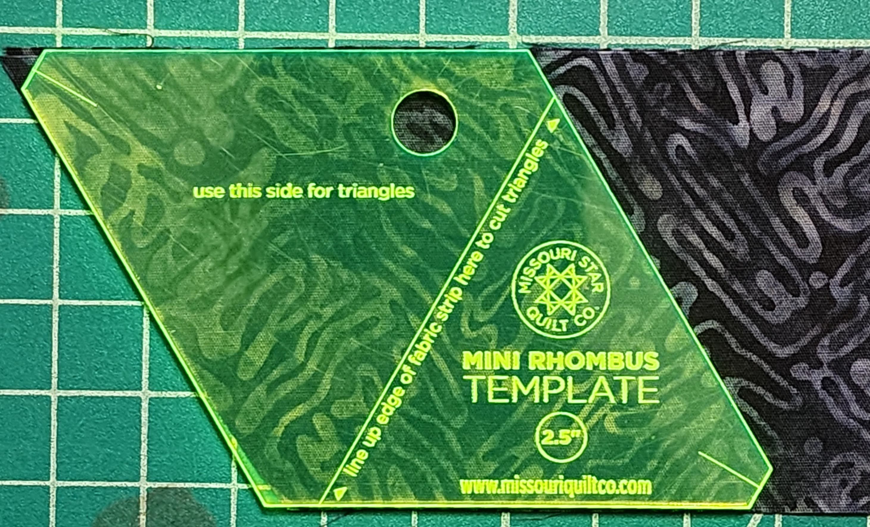 A couple years ago, I had purchased a small Rhombus and a mini-Rhombus templates from Missouri Star Quilt company. I decided to use the Mini-Rhombus template on the 2 1/2″ strips.