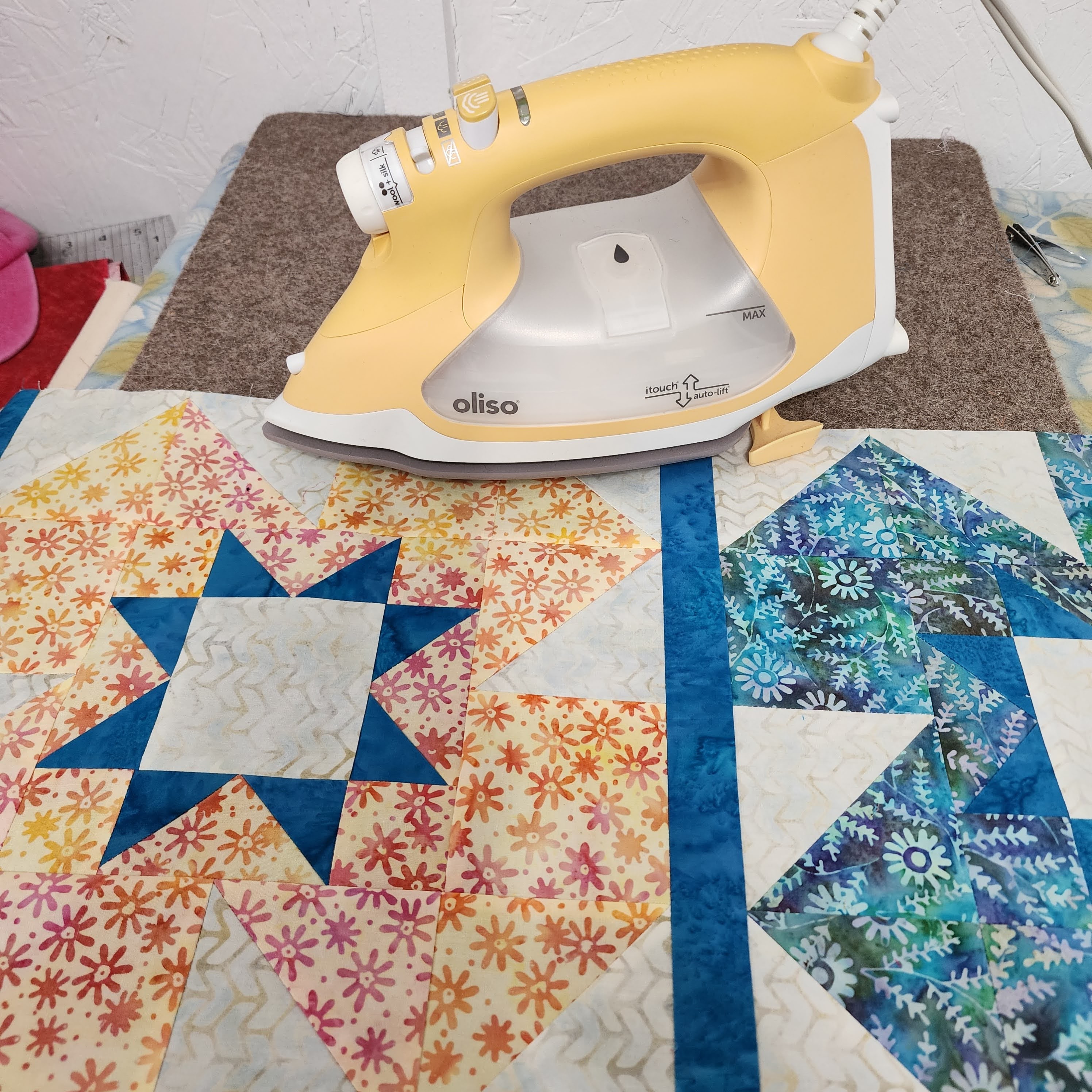 Each block was pressed using my Oliso iron. I received this iron from Oliso as a 2024 Island Batik Ambassador. I love using this iron, it makes pressing all the seams so easy, and at the correct temperature.