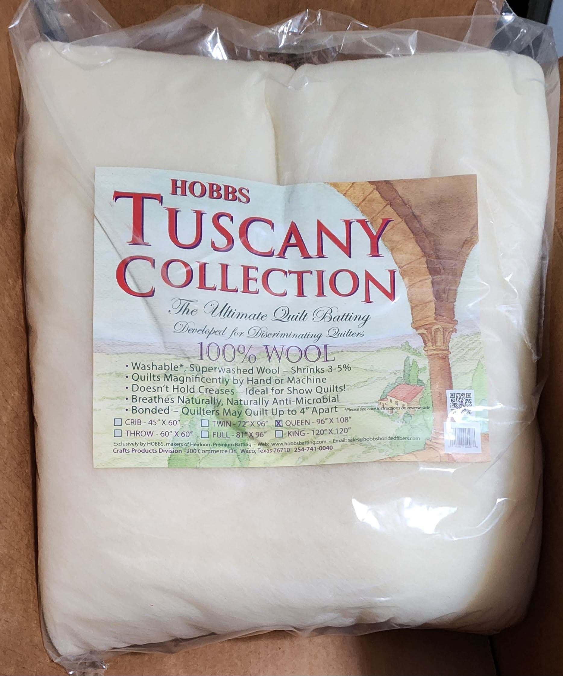 Hobbs Tuscany Collection – 100% Wool – Queen Size – this batting is so soft. I can not wait to find the quilt that needs this Tuscany Batting.