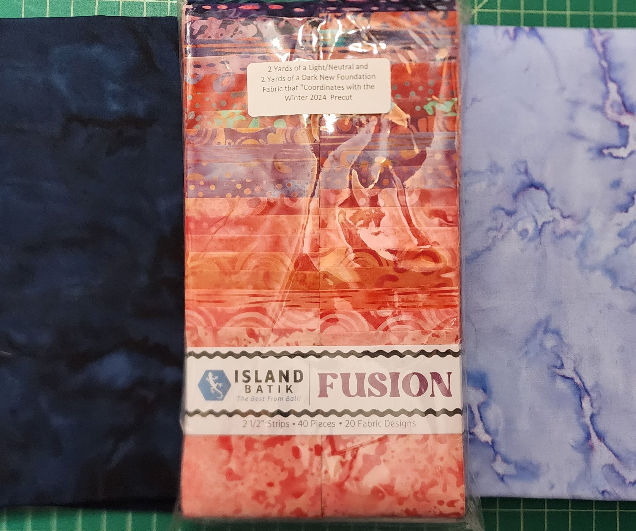 More fabric – 2 1/2″ Strips of Fusion. 40 different fabrics, This is part of the Winter 2024 precut collection.