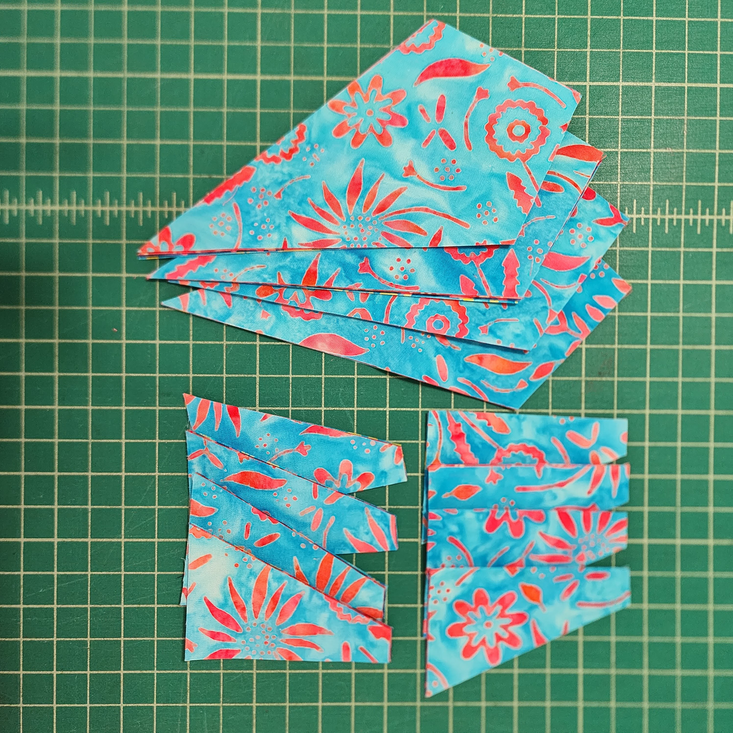 As I was cutting out all the pieces, I realized something. I needed a specific size for the darker fabrics on the Diamond Rects. These can be cut from these size pieces. This reduces the amount of fabric needed.