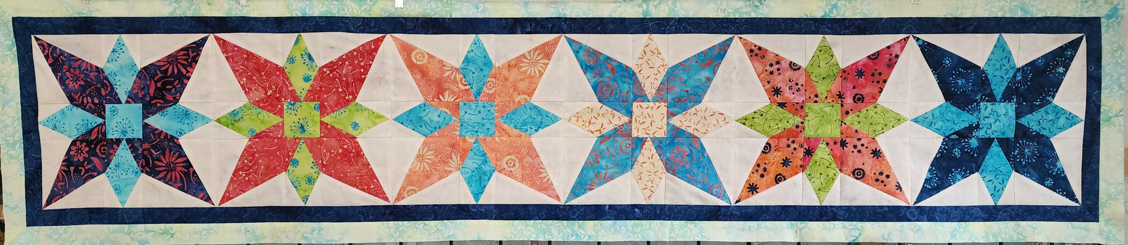 The February 2025 Island Batik Challenge is to create a Table Runner or a Bed Runner. We must use the Studio 180 Designs ruler that we were sent.
