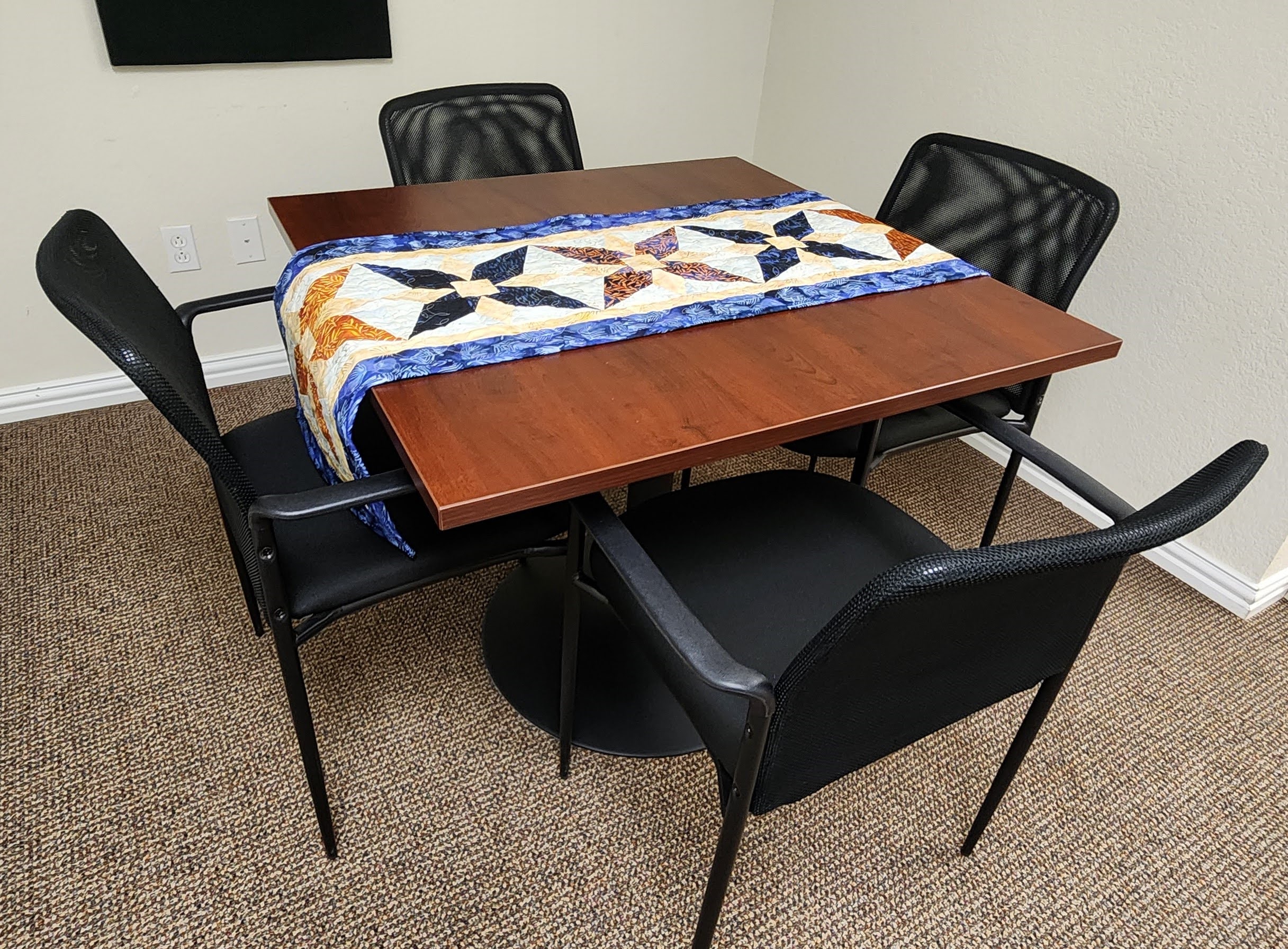 I decided to make a table runner, with her line, using the same blocks as my Bed Runner, just shorter.