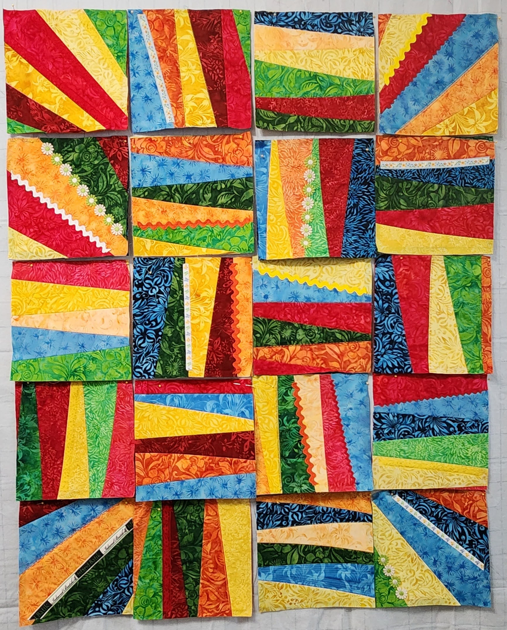 I arranged the blocks on my design wall, experimenting until I was pleased with the layout.