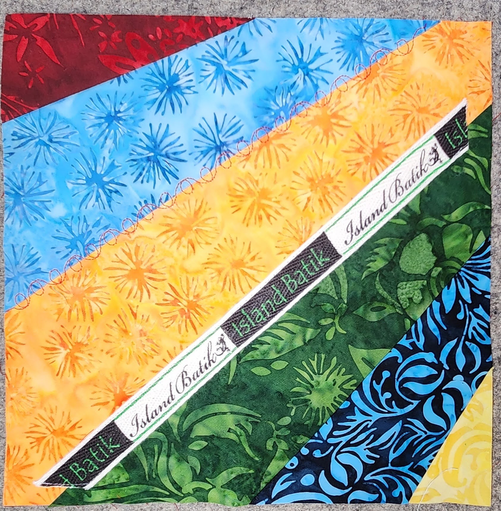 Island Batik and its partners supplied all fabric and materials at no cost. Partners include Hobbs Batting, Aurifil Thread, Oliso Iron, and Schmetz Needles. This was part of my role as an Island Batik Ambassador.
