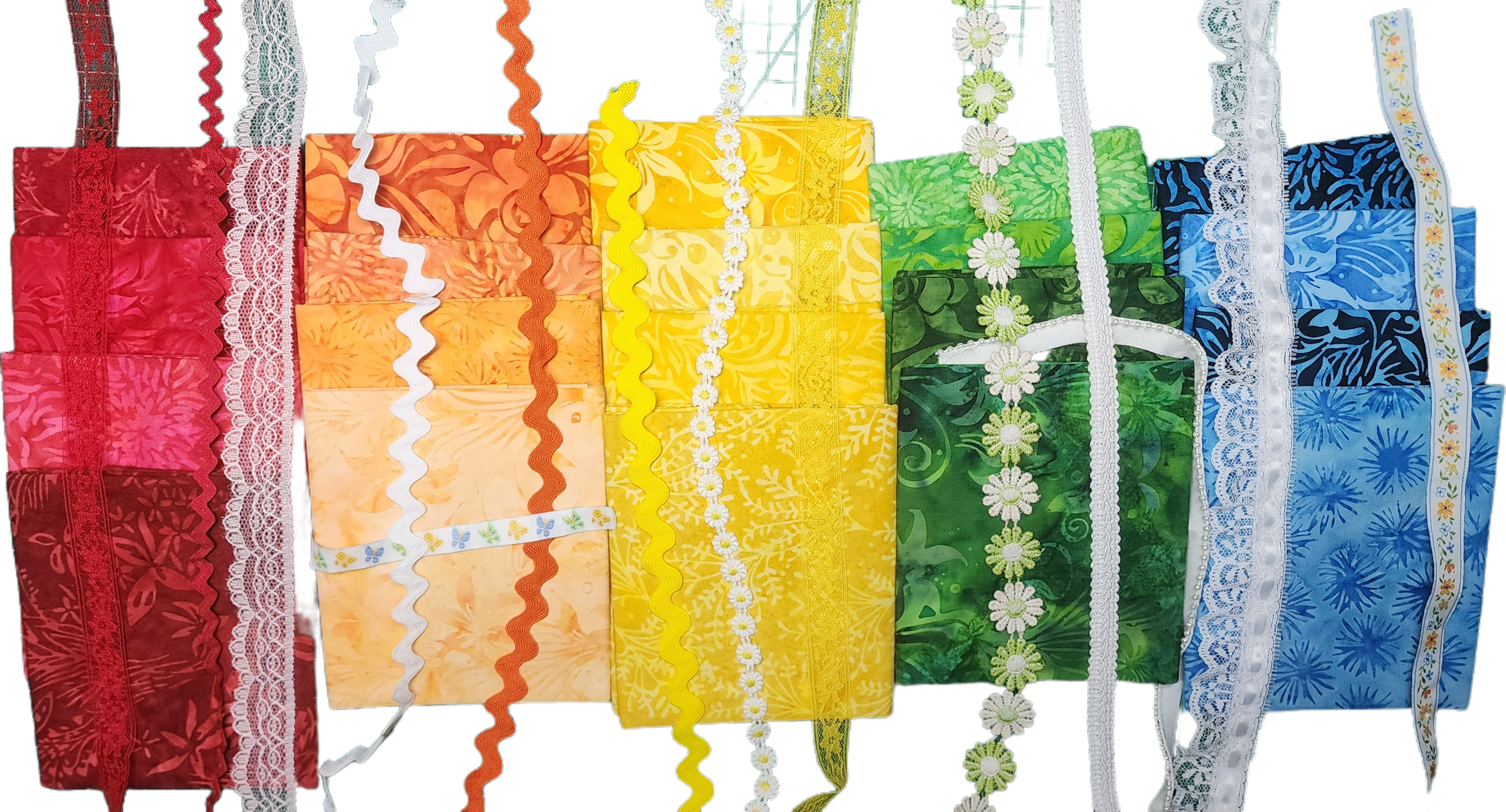 The basic blocks were complete. I added ribbons and lace. I chose which to include based on each block’s colors and layout.