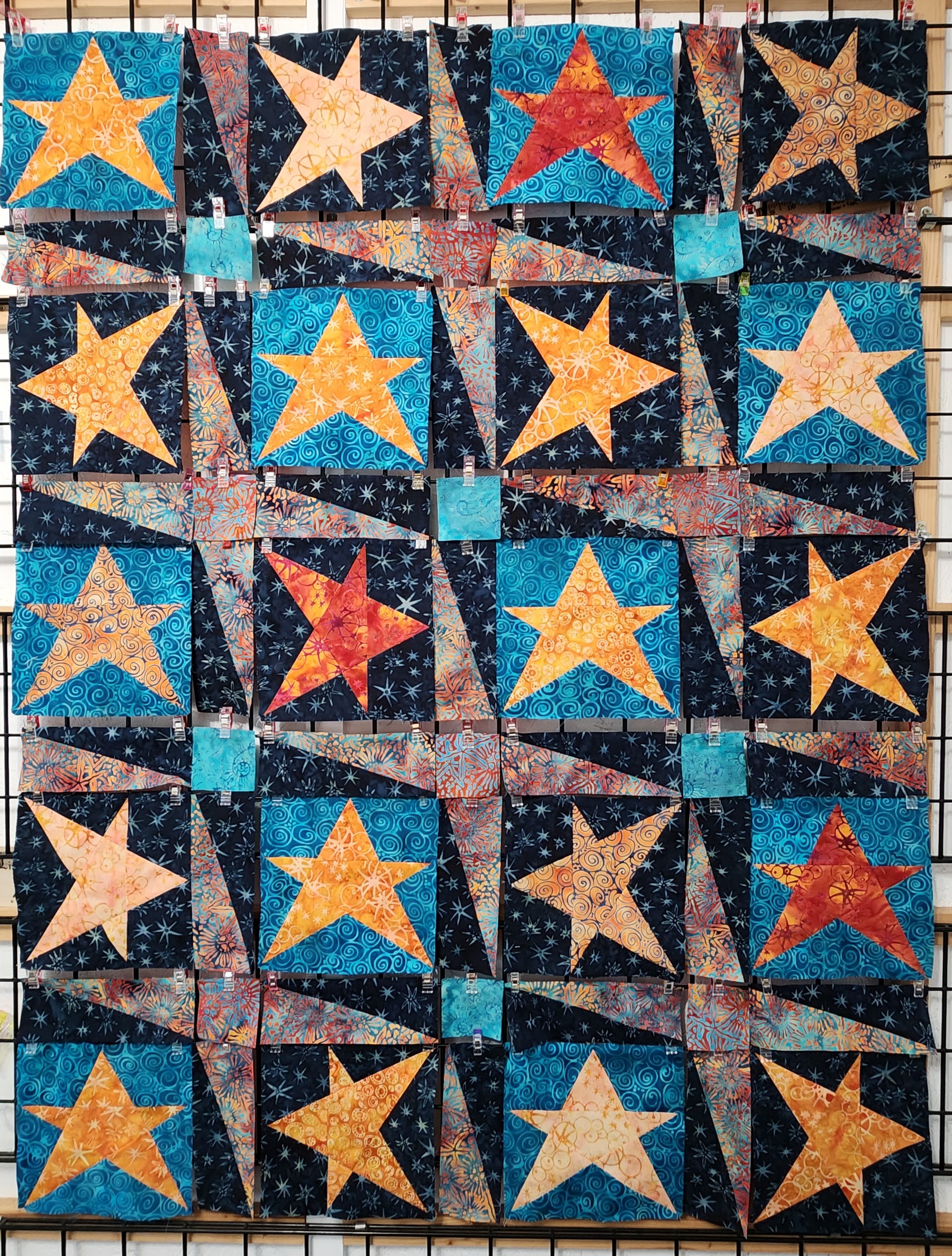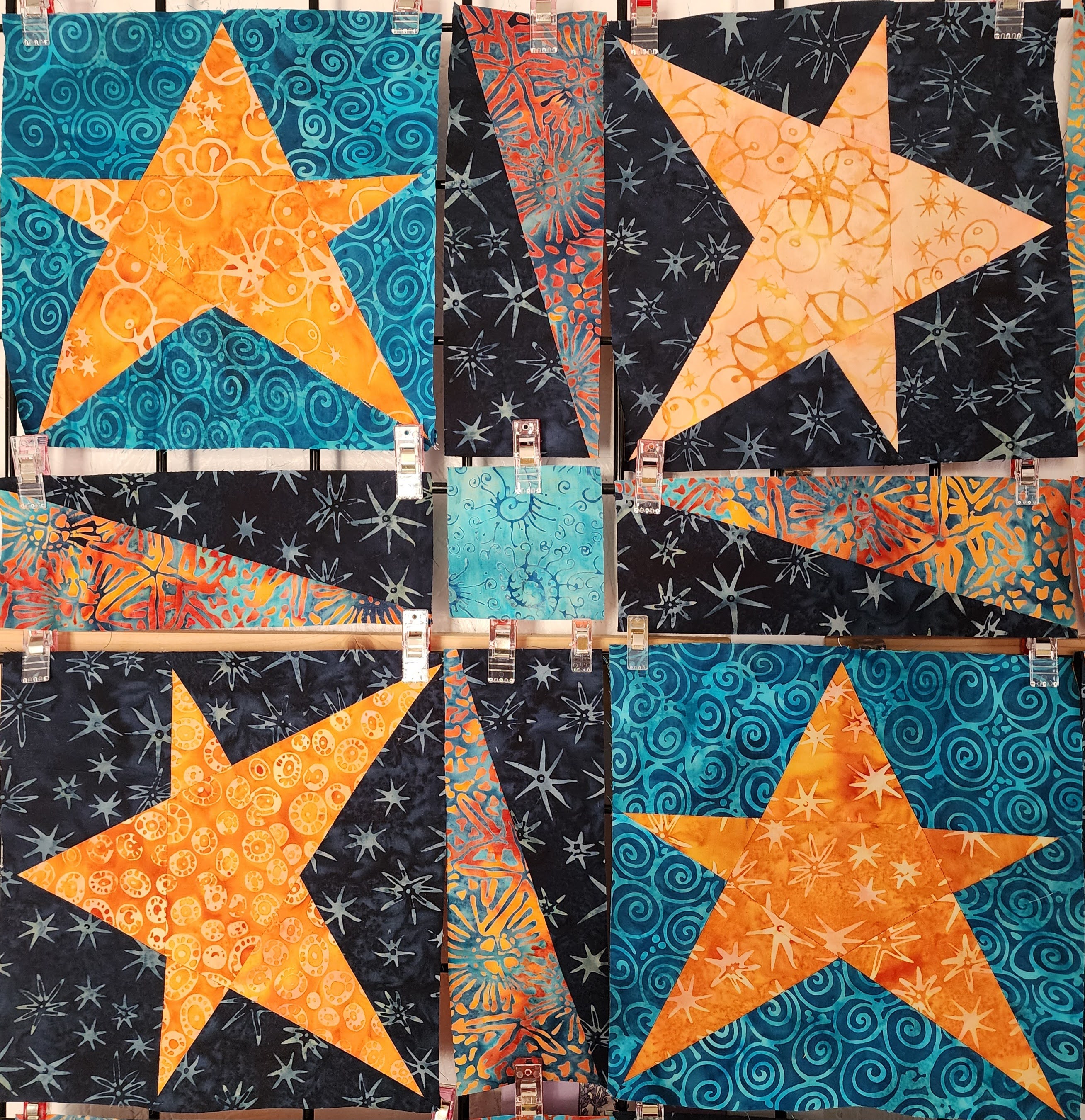 With all the blocks finished, I laid them out. I alternated the star layouts. I used the HSR blocks to create an extra layer of sparkle between the stars.